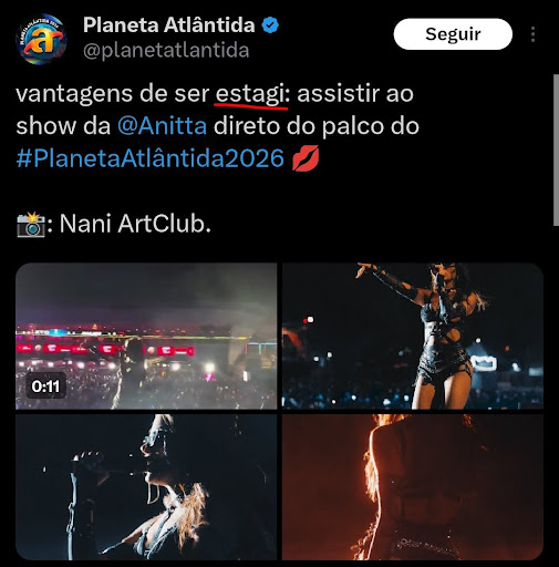 Um exemplo bem atual é a palavra “estagi” que aparece em postagens de redes sociais, especialmente tweets.